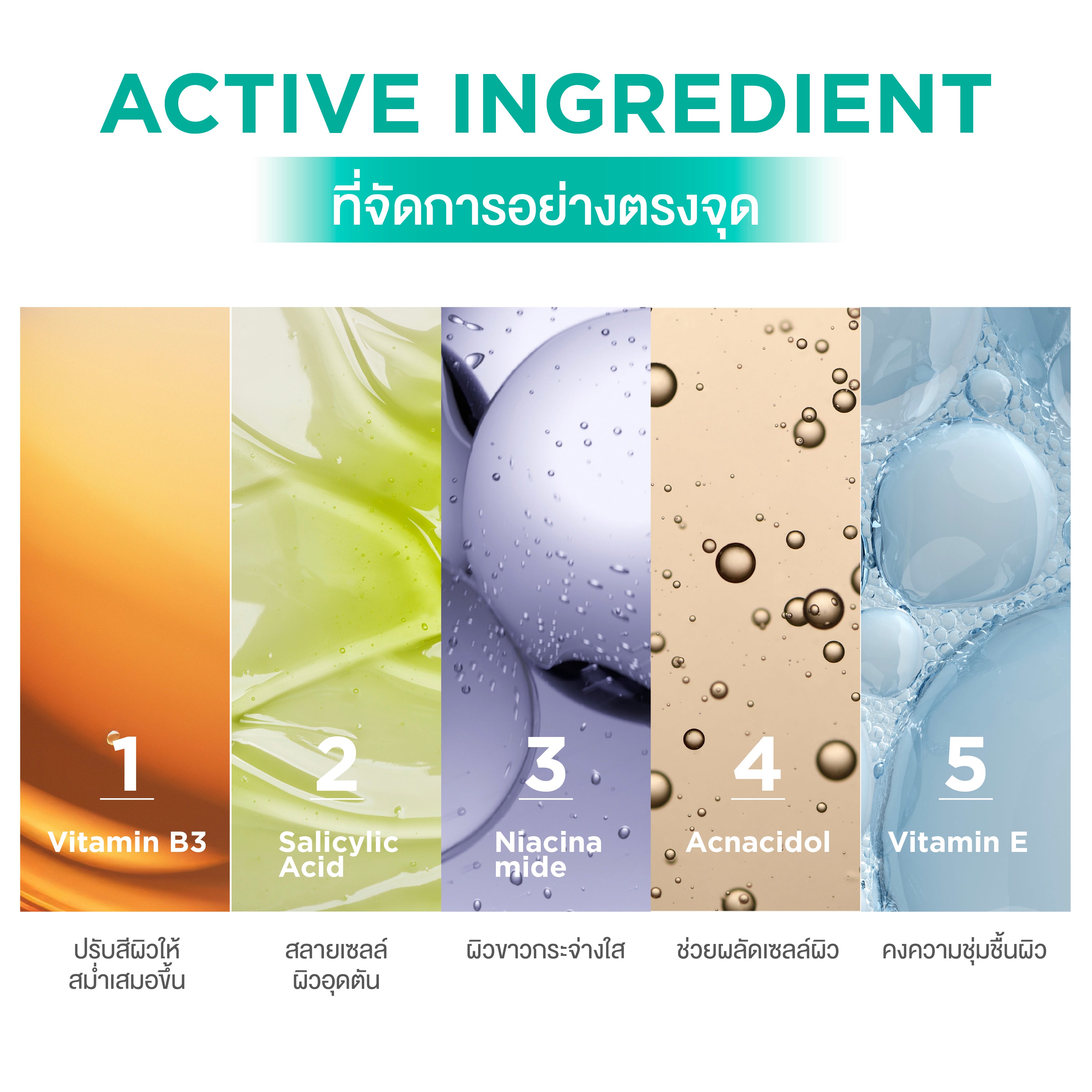 Niacinamide: Reduces the transfer of pigment to the surface layers of the skin, enhancing skin brightness.