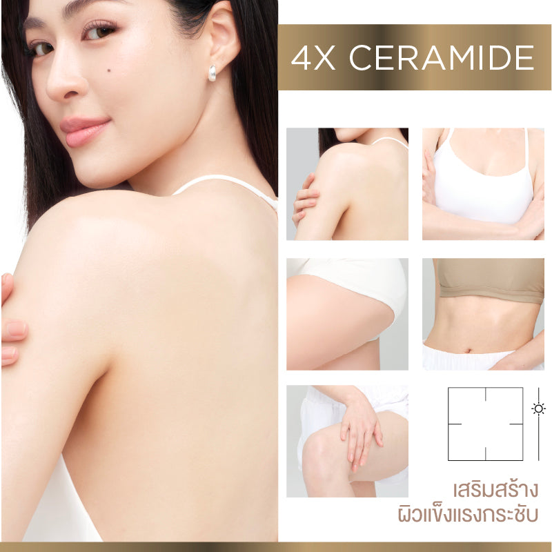 4X Ceramid: 4 in 1 ceramide complex skin booster การรวม Ceramide ทั้งสี่ชนิดที่สำคัญต่อผิวไว้ในหนึ่งเดียว (Ceramide NP, CeramideAP, Ceramide EOP, Phytosphingosine) ด้วยเทคโนโลยี Multi lamellar layers of ceramide in Liquid Crystalline เปรียบเสมือนจำลองชั้นเซลล์ผิวด้านนอก (Stratum Corneum) จึงช่วยให้ผิวแลดูชุ่มชื้น แข็งแรง และช่วยดูแลปัญหาผิวจากการแพ้ระคายเคืองได้เป็นอย่างดี ยังมีคุณสมบัติหลักในการดูแล skin barrier ทำให้ปราการผิวแข็งแรง ช่วยป้องกันผิวจากสิ่งกระตุ้นต่างๆ ทำให้ผิวไม่แพ้ง่าย สามารถเพิ่มความชุ่มชื้นและลดการสูญเสียน้ำของผิว