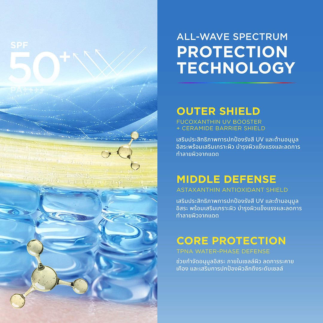Enhanced with All-Wave Spectrum Protection, it shields against UVA, UVB, blue light, ultra-long UVA, and infrared radiation. The advanced 3-layer protection system works continuously to reinforce skin defense.