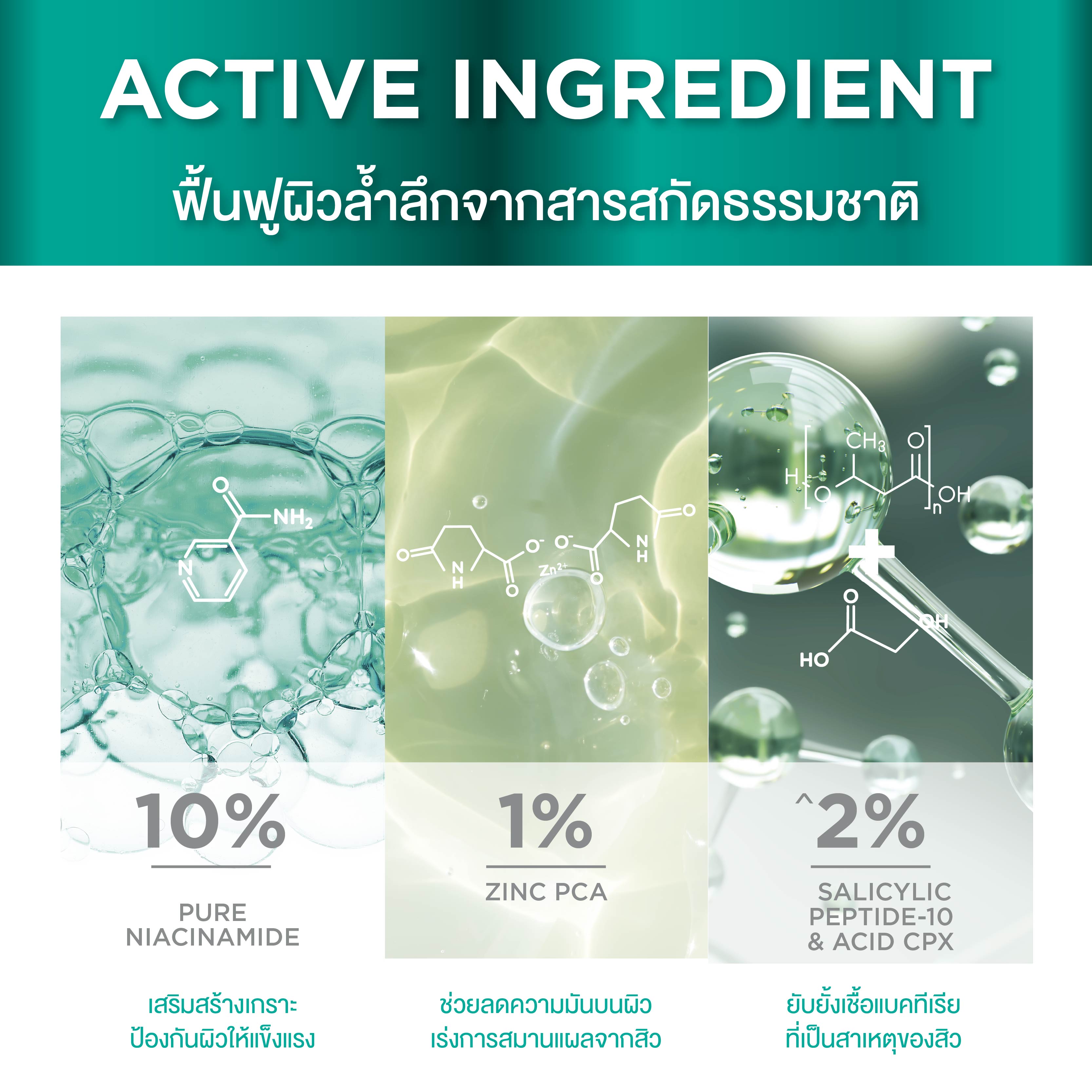 นวัตกรรมเนื้อเซรั่มสูตรเข้มข้น ช่วยลดโอกาสการเกิดสิวและช่วยผลัดเซลล์ผิวที่เสื่อมสภาพจึงช่วยลดการเกิดสิว